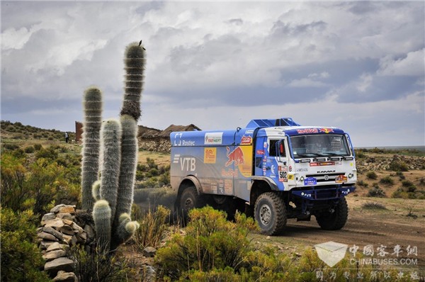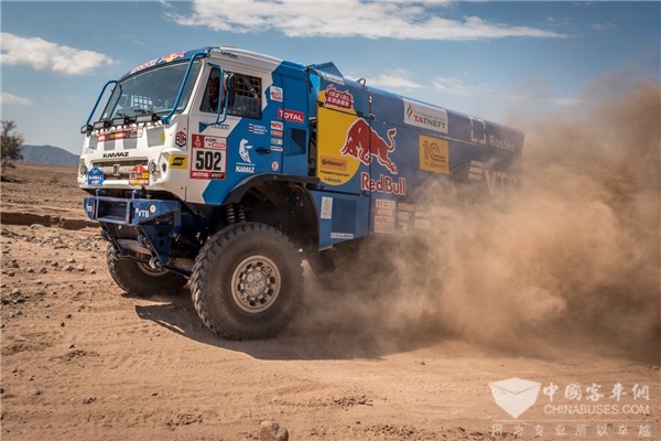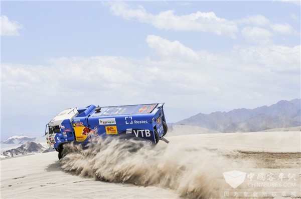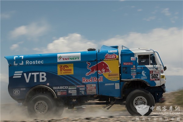 置身于恶劣的比赛环境,44支队伍中仅有19辆赛车完成比赛。卡玛兹赛车却一路压过沙石,和陡坡“硬碰硬”,其中在第八赛段中502号赛车获得卡车组赛段第一,而凭借熟练的驾驶技术及顽强的身体素质,卡玛兹500号赛车最终在卡车组折桂!502号赛车获得第十名的佳绩,让广大车迷见证了卡玛兹车队的赛事激情与“硬汉”实力!