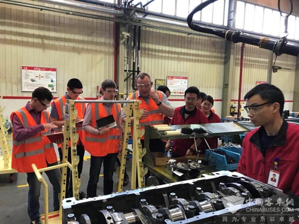 12日上午,东风康明斯市场、服务、质量、装配工艺、产品、材料等各相关部门的业务精英们和ZCK来访团队相互进行了简单的沟通了解。随后ZCK访问团队对东风康明斯西区厂房和生产线进行了参观。参观过程中,客人们因东风康明斯的产能、设备现代化程度、以及严格专业但又不失实用性的操作标准等不时发出赞叹。赞叹之余,客人们还抛出了很多问题请教:泄露测试的具体操作方式和标准?料架防错如何实现?AQS如何进行?陪同人员均一一详细解答,基本解决了客人所有的疑问。