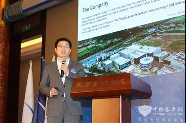 论坛上,微宏动力系统(湖州)有限公司市场总监宋寒作为演讲嘉宾,在会上表示,电池是新能源汽车最为关键的部件之一,而电池最重要的三个技术指标就是快充电、长寿命、高安全,这也是微宏区别于同行企业的特色所在。宋总幽默地将微宏电池比作一颗大树,而这三个技术指标恰好就如大树的根基一样。10-15分钟快速充电,保证运营的效率;长寿命能做到电池与车辆同寿命,最终降低了用户用车的成本;而高安全的特性则是现在很多电池企业难以做到的。微宏能做到这三点,都是基于从电池材料体系到系统层面的深入开发,并且做到从材料本身到电池系统的垂直整合。