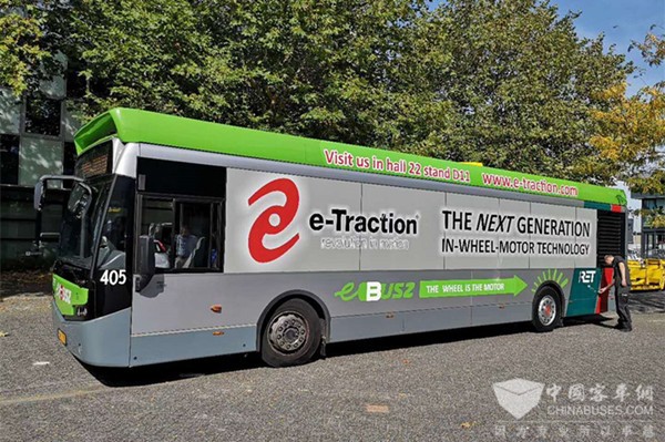 中国泰特荷兰子公司e-Traction携最先进的电驱动技术轮毂电机参展,与此同时,e-Traction将一款在鹿特丹运营了9年的轮毂电机客车带到现场,供观众近距离试乘体验。
