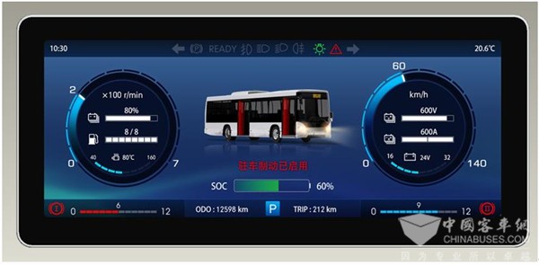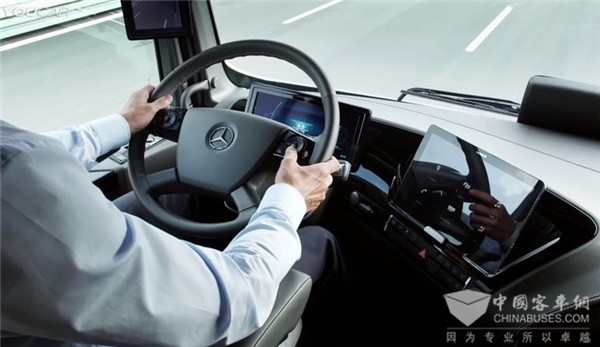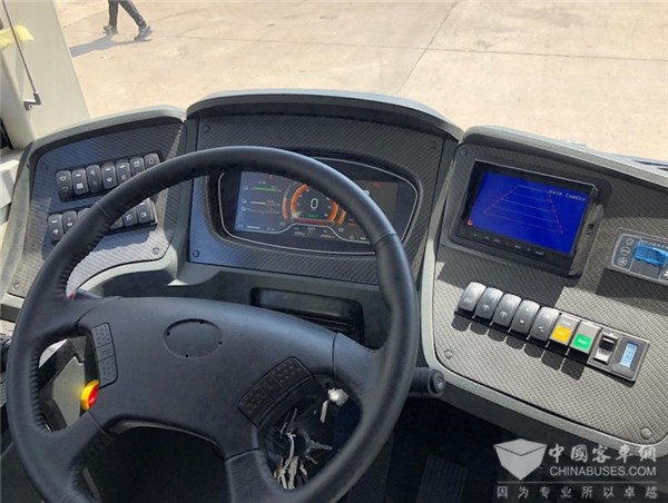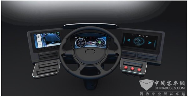 【全数字驾驶舱】:薄片式悬浮全液晶仪表+薄片式智能中控屏+调度屏+电子后视镜+随动式仪表台