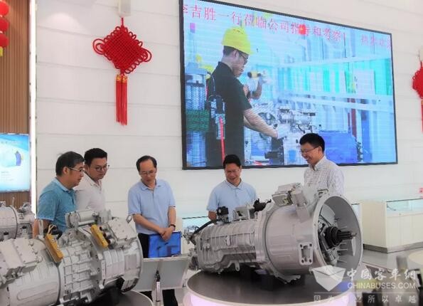 李吉胜总经理一行先后参观了绿控的产品展厅、新能源汽车驱动系统的研发机构和生产线,对绿控的产品种类、生产规模、以及研发试验和生产制造能力等各方面情况,都做了详细的了解。参观过程中,李吉胜总经理对绿控的研发试验能力和智能制造水平都给予了高度评价,他惊叹道“从成立到现在,绿控经过8、9年的发展,能把产业链不断延伸,着实不简单。”