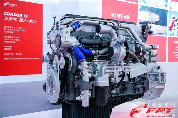 作为菲亚特动力科技最具动力的一款天然气发动机,直列六缸的Cursor 13采用易于安装的三元催化后处理系统,与相同功率的柴油机相比,PM排放量减少了95%,氮氧化物排放量减少了48%,可以满足国六b(GB VIb)排放法规,不仅有助于保护环境,还确保了最佳燃油消耗,降低了发动机噪音。配置的多点喷射系统为发动机提供了精确的燃油输送,确保了快速稳定的燃油效率,使Cursor 13在低油耗的基础上具备媲美大排量发动机的瞬态响应,以及上佳的发动机性能,最高功率可达338kw,最大扭矩高达2000Nm。成为满足高性能、低成本的长途路况的最佳可选方案。