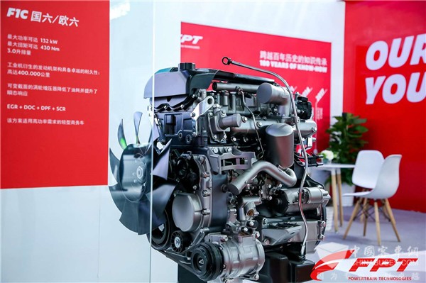 菲亚特动力科技展出的F1C国六柴油发动机,主要应用于轻型商用车和轻型客车。采用了燃油共轨喷射系统,可以在提供最佳性能表现的同时将燃油消耗降至最低。后处理系统将冷却后的废气再循环系统(EGR)与选择性催化还原(SCR)结合在一起,提高了发动机的可靠性,降低了燃油消耗。搭载可靠耐用的3升设计,可提供125kW的最大功率和400Nm的最大扭矩,适用于平均负载高的长途车辆。