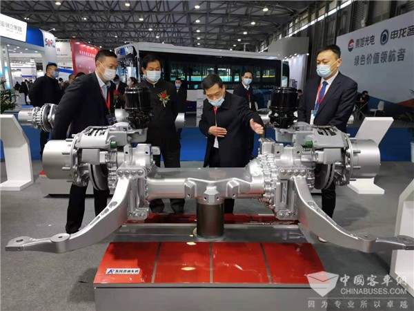 本次展会,东风德纳车桥面向市场,向行业专家、领域精英们全方位展示公司自主研发的Ep-Axle19C2轮边电驱桥、升级版260D低地板客车桥、Ep-Axle6,Ep-Axle13,IF75-CD独悬桥等多款新能源客车车桥核心技术产品,向客户、媒体展示了公司提前布局新能源汽车领域,致力于引领行业发展的强大信心。加纳驻北京大使馆秘书朱尔·贝内、斯里兰卡民主主义共和国驻上海总领事馆总领事马诺瑞·马莉卡瑞琪、上海市长宁区区委书记卞百平、上海城市交通管理局局长孙建平、久世集团巴士公交总经理张必伟、中国土木工程学会城市公共交通分会秘书长王丰余、副秘书长蔡夏英及国内外50多家公交公司、媒体代表专业参观团莅临东风德纳展台。
