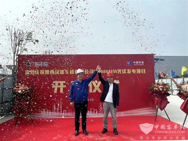 2022年5月11日上午,汉德车桥光伏发电项目开工仪式在中轻卡车桥基地举行。公司总经理助理王永安及华能集团铜川电厂副总经理张国兴参加观摩及座谈活动,王永安一行听取了承建单位对项目实施情况的详细汇报,并对该项目的后续工作提出要求和建议。