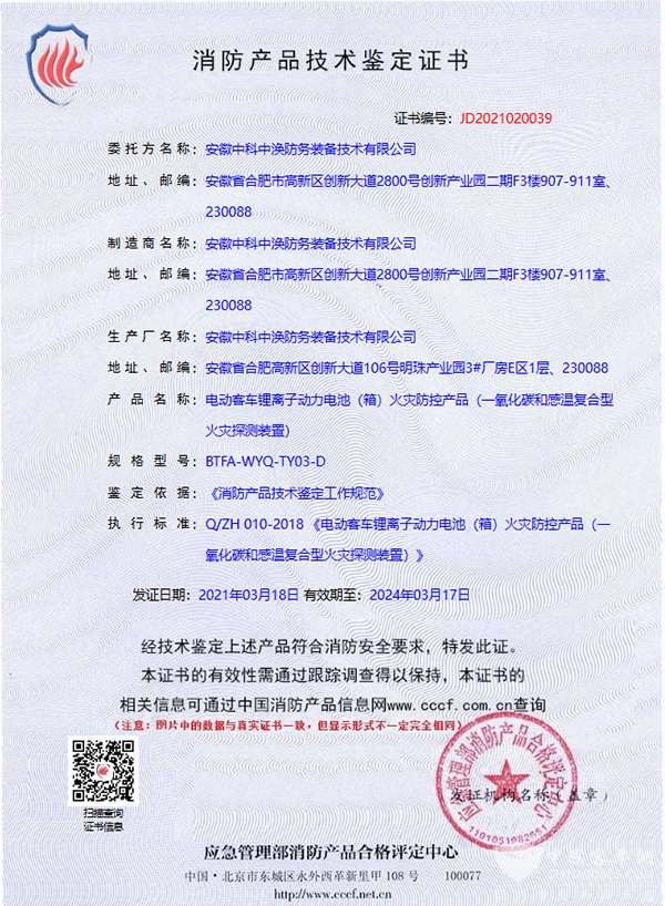 由中科中涣参与起草的JT/T 1461-2023《客车锂离子动力蓄电池箱火灾防控装置配置要求》行业标准,已于2023年01月19日由中华人民共和国交通运输部发布,于2023年7月19日起正式实施。该《标准》由全国汽车标准化技术委员会客车分技术委员会(SAC/TC114/SC22)提出并归口,由中国公路学会客车分会、应急管理部天津消防研究所、安徽中科中涣智能装备股份有限公司等20多家企业单位起草。