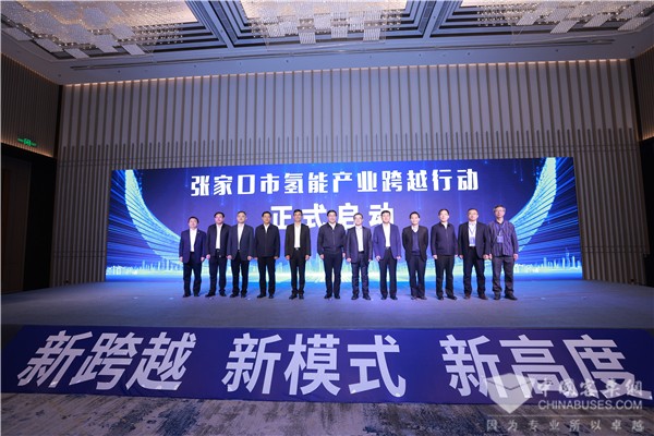 2023年11月27日,张家口氢能产业跨越行动启动仪式(后简称:跨越行动)在张家口市举行。张家口市市委书记赵文锋等市政府领导,中国科学院院士、清华大学教授欧阳明高、北京清华工业开发研究院院长金勤献、中国汽车技术研究中心首席专家方海峰等行业专家,国家能源集团、中石油、中石化、一汽、福田、宇通、飞驰等企业代表出席。