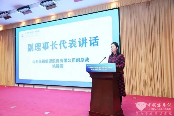 山西美锦能源股份有限公司副总裁姚锦丽代表新当选的副理事长单位讲话。她表示,作为中关村氢能产业联盟的副理事长单位,应始终坚持以创新为动力,以市场为导向,以合作为桥梁,致力于推动氢能产业的技术研发、示范应用和产业协同;也应充分发挥企业自身作用,加强会员单位之间的资源共享和优势互补,促进产业链上下游的深度合作和创新发展。