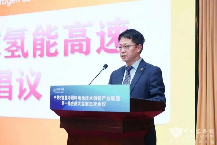 联盟副秘书长、北京亿华通科技股份有限公司常务副总经理于民代表联盟发布“推进京津冀氢能高速示范”倡议,为支撑推进京津冀氢能产业协同发展,响应中国燃料电池汽车大会关于《共建中国氢能高速行动倡议》,联合氢能产业链各相关单位,对全体联盟成员提出倡议:一是推动燃料电池车辆跨区域联合推广应用,构建从绿氢供应到交通领域规模化、跨区域综合应用示范;二是以京张、京唐为重点线路,协助政府相关部门,推动示范线路运行的燃料电池车辆高速过路费用政策性减免;三是构建以国企实际物资运力为应用场景,以联盟骨干会员为主体,以集中攻关研发带动液氢重卡应用示范。