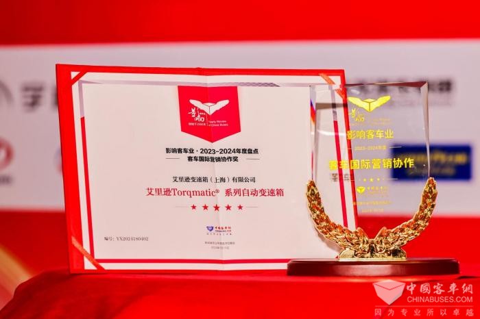 2024年1月19日,“第十八届影响客车业年度盘点活动”在合肥举行。活动期间,经组委会评审团评定,艾里逊凭借积极的海外合作、从国内走向出口的成绩,以及旗下Torqmatic® 系列自动变速箱产品,荣获“客车国际营销协作奖”。艾里逊获得该大奖不仅仅是行业的肯定,也是市场对艾里逊的认可。
