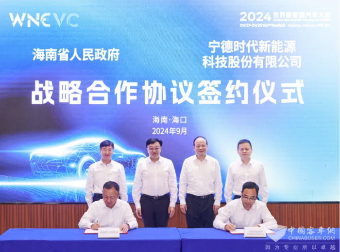 2024年9月28日,海南省政府与宁德时代在海口签署战略合作协议。海南省委书记冯飞、省长刘小明,宁德时代董事长兼CEO曾毓群、监事会主席吴映明见证签约。