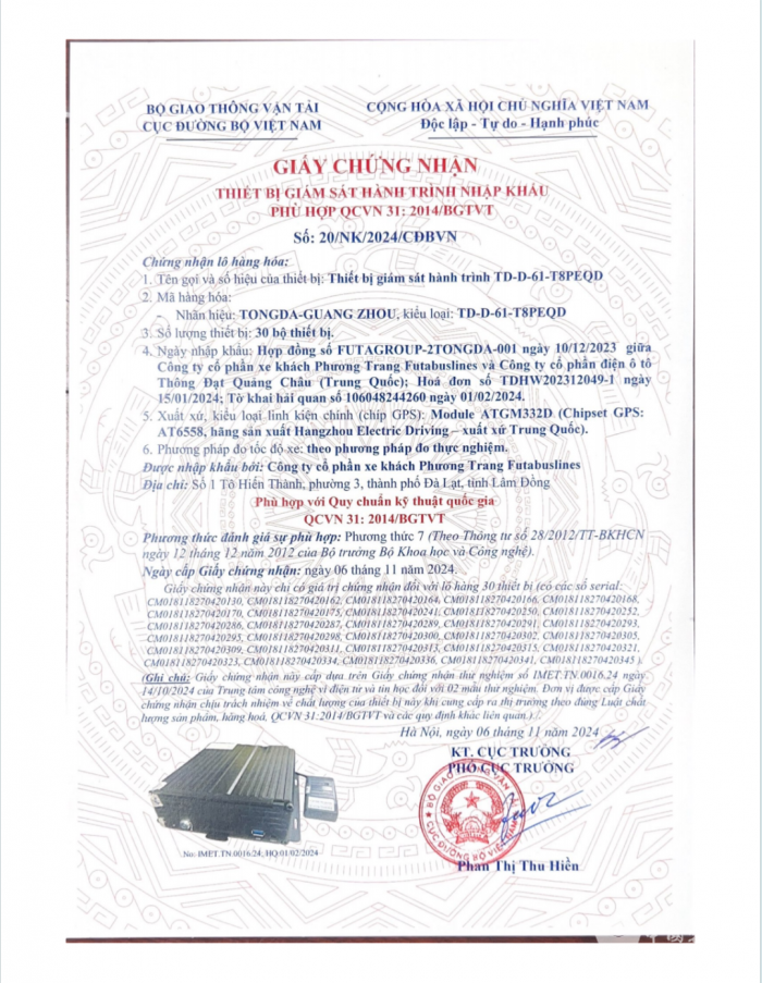 通达电气监控设备(TD-D-61-T8PEQD)以及监控平台通过越南国家道路总局交通运输部QC312014BGTVT标准认证,系越南国家级标准认证;相关产品达到在越南国内交通运输设备上使用的标准,能够提供智能化、一体化解决方案。