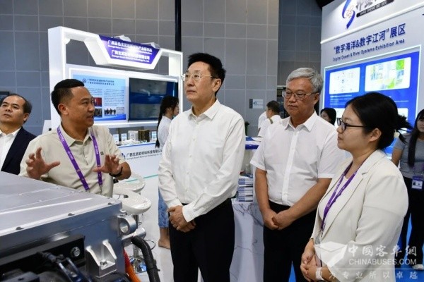 广西壮族自治区党委委员、政协副主席、党组成员何辛幸,百色市委书记、百色军分区党委第一书记黄汝生,自治区发改委党组书记、主任白松涛,自治区党委副秘书长、政研室主任黄兰喜,等多位自治区及百色市领导亲临展位参观指导,对公司展示的创新产品给予高度关注。领导们详细了解了公司氢能产业的发展布局和市场应用情况,并就氢能产业在广西及东盟地区的应用前景进行了深入交流。