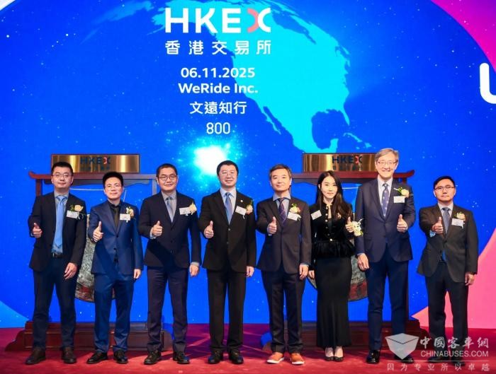2025年11月6日,全球领先的自动驾驶科技公司文远知行WeRide(HKEX: 0800,Nasdaq: WRD)正式在香港交易所挂牌上市,股票代码0800.HK。继在纳斯达克上市成为全球Robotaxi第一股后,文远知行成为港股Robotaxi第一股,也是全球首家在“美股+港股”双重主要上市的自动驾驶科技企业。本次港股上市,公司全球发售股份总数(绿鞋前)为8825万股,触发回拨机制后公开发售股份为1765万股,国际配售股份7060万股,每股定价27.1港元,募资总额(绿鞋前)达23.9亿港元。