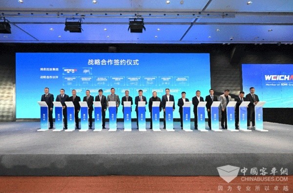 会上,潍柴集团副董事长、潍柴动力总经理王德成代表潍柴与15家战略合作伙伴签署战略合作协议,并为优秀战略合作伙伴颁奖。