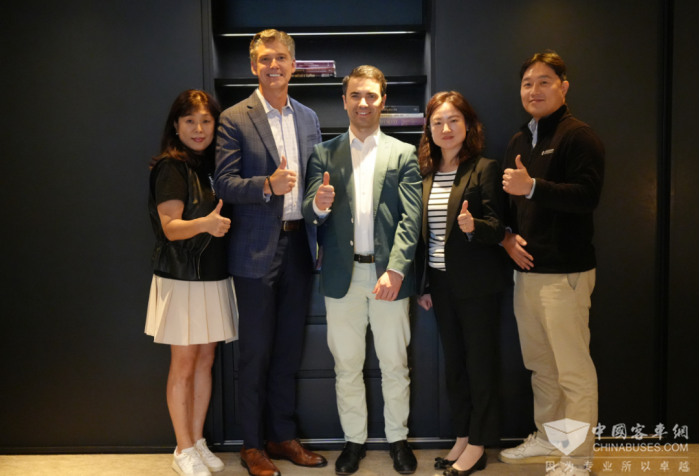 从左到右:艾里逊变速箱韩国区域总监李京美(Kyoungmee Lee)、产品工程与技术副总裁Ryan Milburn、全球市场与对外传播执行总监Alex Schey、亚太区市场总监王燕、韩国区域市场拓展专员Byounghak Kim