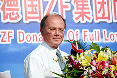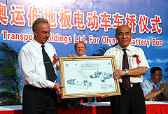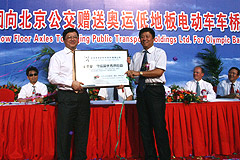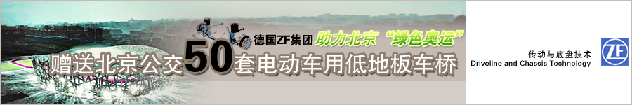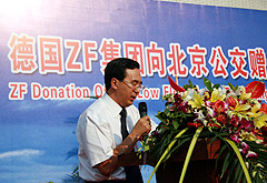 | 9月3日,德国ZF集团向北京公交公司捐赠电动车低地板车桥仪式在北京公交公司总部隆重举行。仪式上,德国采埃孚集团向北京公交公司赠送了50套2008奥运会电动车用低地板车桥。采埃孚集团副总裁、亚太区主席Manfred