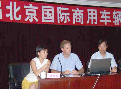 在新闻发布会上,建设部科学技术委员会城市车辆专家委员会主任、组委会主任李世豪介绍了展会的组织情况以及客车大赛的,交通部交通试验场有关负责人介绍第二次全国客车大赛节油奖的测评方法。