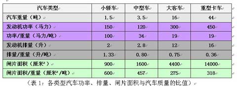 如今,卡车、客车等大型汽车的排量、马力日益增加,而面对这些动力强劲的“猛兽”,仅以普通的形式进行制动,其巨大的制动负荷是制动片所不能承受的(见表1)。