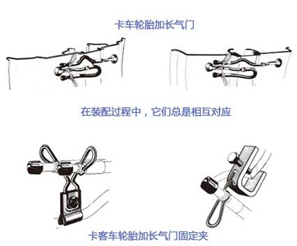 加长气门安装在复轮内,以便检查气压。确保它们正确安装并良好固定(如需要)如下图所示。