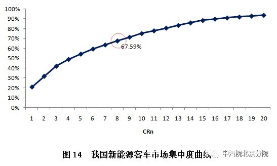 行业集中率是指该行业的相关市场内前N家最大的企业所占市场份额的总和。经计算,2016年我国新能源客车行业CR8指数为67.59%。根据美国经济学家贝恩和日本通产省对产业集中度的划分标准,将产业市场结构粗分为寡占型(CR8 ≥ 40%)和竞争型(CR8<40%)两类。我国新能源客车属于寡占型市场,市场相对集中。