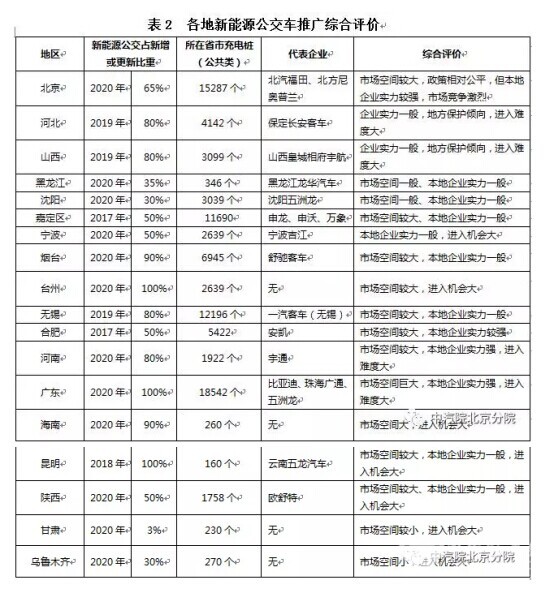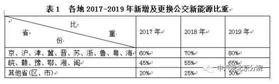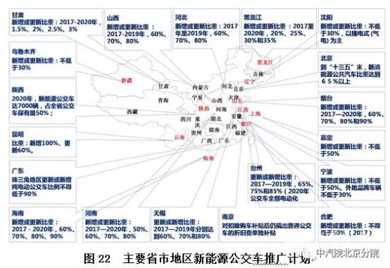 (2)2015年11月3日,交通运输部、财政部、工业和信息化部三部委联合印发《新能源公交车推广应用考核办法》(试行)。新能源公交车推广应用目标完成情况主要考核各省(区、市)每自然年度内新增及更换的公交车中新能源公交车的比重。2017年,新增及更换的公交车中新能源公交车的比重20%-60%。