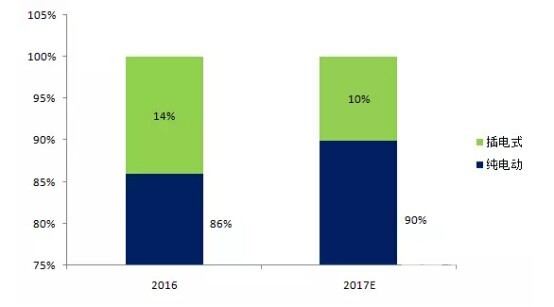 受国家新能源推广考核的外部要素和各地新能源转型的内部要素双重驱动,新能源公交车将在2017年继续发力,公交占比仍将进一步扩大。