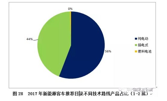 插电式混合动力(含增程式)补贴额度大幅减少,预计2017年,插电式混合动力客车的销量还会进一步减少。燃料电池客车市场有待培育,短期发展仍然缓慢。这一点从2017年前两批推荐目录中,三种技术路线产品数量占比也得以印证。