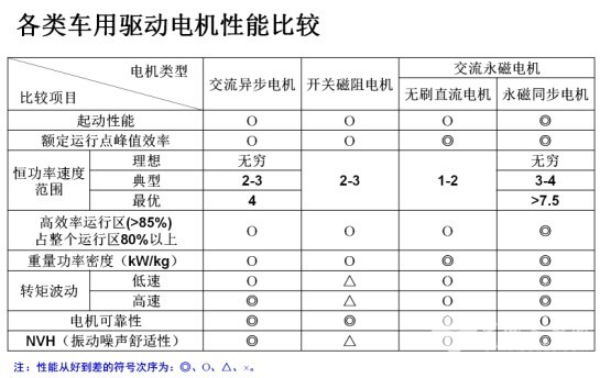 从电机本体的控制性能看,交流异步电机和永磁同步电机基本上是相当的。当然现在也有一小部分在低成本的电动车上可能用到无刷直流电机,无刷直流电机由于自身特点,在调速性、功率密度和效率方面,与永磁同步电机差距还是存在的。
