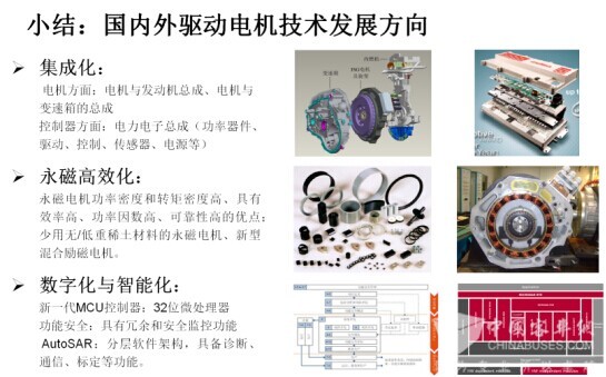 最后小节一下驱动电机技术发展方向:一是集成化,包括机电耦合集成、电力电子控制器集成;二是高效率化,不管通过什么技术途径,我们永远追求高效率和低成本;三是数字化和智能化,这和电机控制器的发展关联度最高。