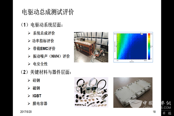 今天的报告主题包含两部分内容,一方面是当前驱动电机的技术发展状况,另一方面是与之相适应的测试评价体系。