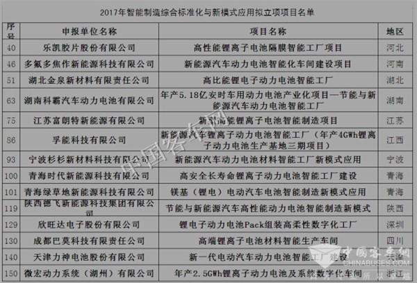 就公示的企业而言,2017年立项的企业有客车行业熟知的青海时代(宁德时代新能源青海工厂)、天津力神、微宏动力等,已经在客车动力电池方面耕耘多年,是被行业认可的主流品牌。