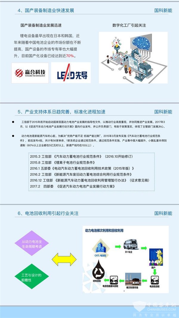 第四方面,就是我们国产的装备制造业,这些年有非常快的发展。过去我们每年参加日本的电池展,更多的看到日本、韩国乃至欧洲的设备,现在我们到日本的电池展看看,有多少中国的设备厂家进入了他们的展台,也成为国际上竞标的一个主力军。从我们自己来说,相对于18650的自动化程度,这些年一直很高,但是在方形电池和软包电池,实际上这些年中国的电池装备商作出了非常大的努力。