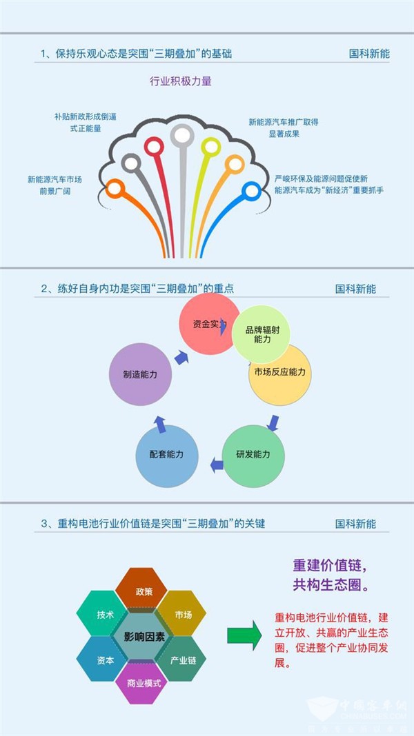 这种商业模式,一方面我们讲是我们上下游之间,是我们和销售之间,更重要的我们企业之间,对于像创新型的电动汽车这样的行业,其实我在强调的一句话,过去传统行业强调单个企业自己的核心竞争力,作为一个新兴产业,我们应该强调的是生态圈,我们应该重构它的价值链,应该重建它的生态圈,应该抱团取暖,应该上下游齐心协力,政、产、学、研、商乃至于资本,我们形成合力去推动这个产业的进步,而不能只考虑上游材料怎么赚钱怎么弄、下游怎么压价怎么来,你想想作为苦逼的电池行业难道只能死路一条吗。