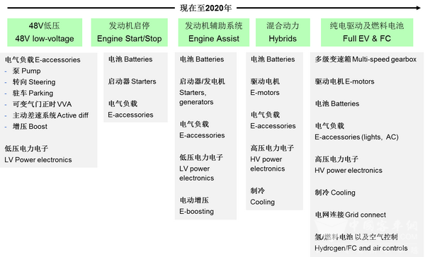 新能源客车行业作为产业链的龙头,这几年得到了长足的发展。 同时也到了一个行业内围绕补贴政策、技术路线以及发展规划讨论和争议的关键时期。从新能源汽车发展的初期到2020年,整个商用车发展的技术路线基本如图中所示。图中既包括我们常常提到的纯电动、混合动力和燃料电池;也包括发动机的性能提升技术、车载电附件技术以及电力电子的关键技术。