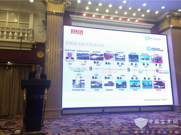 我们专利的双离合系统还批量应用于江苏盐城、甘肃天水等地的公交线路,分别装配的是亚星客车和福田欧辉客车。作为公交客户一定会关心我们匹配的车辆,我们在亚星客车、福田欧辉客车、安凯客车、南京金龙已经进行了成功的配套,同时我们也在跟大小金龙对接,已经提供了双离合系统产品,供大小金龙做台架测试及样车验证。我们也在与苏州金龙、中通客车进行沟通和交流,希望我们的双离合系统能够推广到更多的地方。为推广这种专利技术,我们在今年5月份参加了北京道路运输车辆展,来向客户推介我们的专利产品,这项专利技术的发明人、插电混动之父安德鲁·弗兰克教授也从美国来到中国,在北京做了一个专题的报告。
