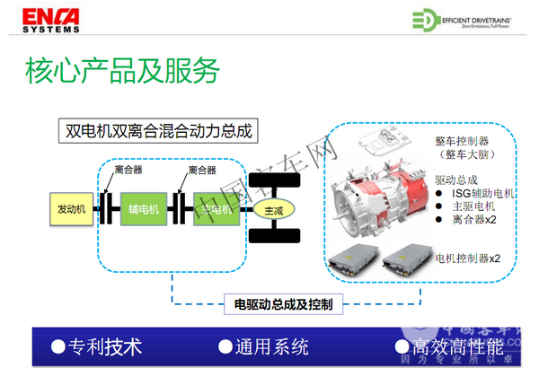 茵卡动力新能源江苏有限公司是一家中美合资企业,属于国家级的高新技术企业,公司致力于发展汽车节能环保,提供纯电动汽车、混合动力汽车的电驱动系统的一个解决方案。我们通过与美国EDI公司的合资,引进这项美国插电式混合动力专利技术,这项专利技术是由安德鲁·弗兰克教授研发的成果,该专利技术的研究是从几十年前就开始做了。这个专利系统优势是在动力的耦合技术,主要是控制专利独有的双电机双离合混合动力结构。这项技术在美国的各种不同的车辆上得到验证,取得非常很大的成功,安德鲁·弗兰克也被誉为这个插电式混合动力之父。