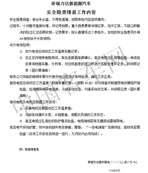 合同中注意要求新能源混合动力公交车生产厂家定期进行体检服务并提供相应的计划和报告(检查对象含主要零部件,如电机、控制器、电池及箱体等);