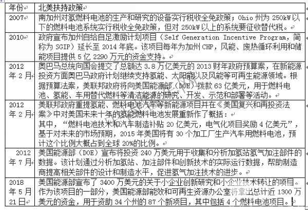 此外, 2012年8月,美国国会在新一期的能源修订会议上重新修订了氢燃料电池政策方案。新法案重新修订了新能源投资税抵免政策(简称ITC),以奖励在生物新能源、HFCV以及热电联产系统中(CHP)运用固定式燃料电池高效发电的企业。经美国国会和美国能源部综合各个州政府的意见后,该法案在Fuel Cell能源公司的支持下重新修订。修订后ITC燃料电池税收抵免政策主要有以下几个层次: