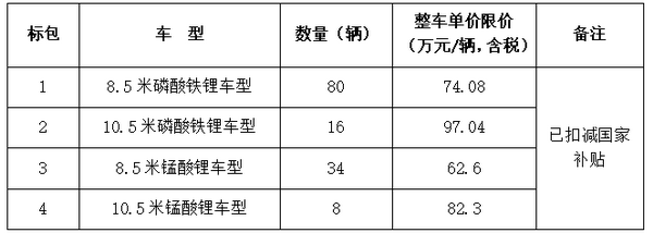 (1)整车单价限价为扣减2018年国家政府对新能源汽车的财政购车补贴后、包含车辆运费等相关费用的整车总价的最高限价。