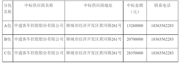 山东东营市公共交通汽车公司新能源公交车中标公告