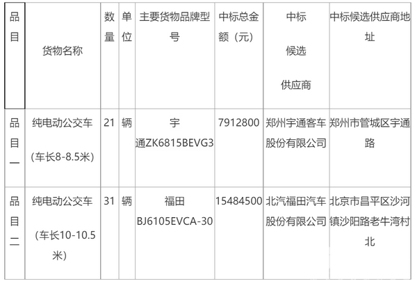 - 北京公交集团2025年度8米纯电动车(快充)项目中标候选人公示