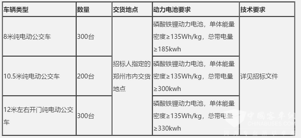 河南郑州市公共交通总公司2018年度第一批800辆新能源公交车辆采购项目招标