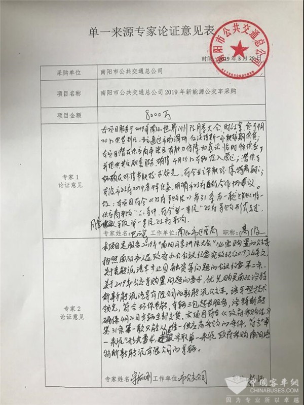 关于南阳市公共交通总公司2019年新能源公交车采购拟采用单一来源采购的公示