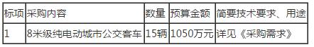 二、 招标项目名称:8米级纯电动城市公交客车采购