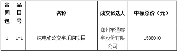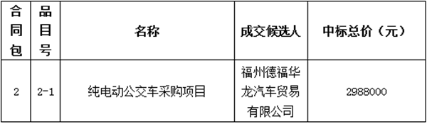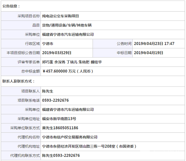福建省宁德市汽车运输有限公司纯电动公交车采购项目中标公告