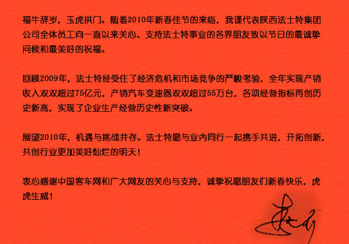 2010 陕西法士特集团公司 董事长 李大开