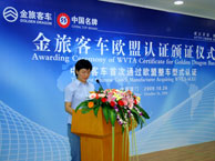 今天我怀着激动的心情和大家、和各位来宾一起见证我国第一个整车型式的认证颁牌仪式在金旅公司进行,为此我代表全体金旅公司向到会的嘉宾表示衷心的感谢!我们出口部的陈经理说得非常好,我们整个认证的..... 【更多】