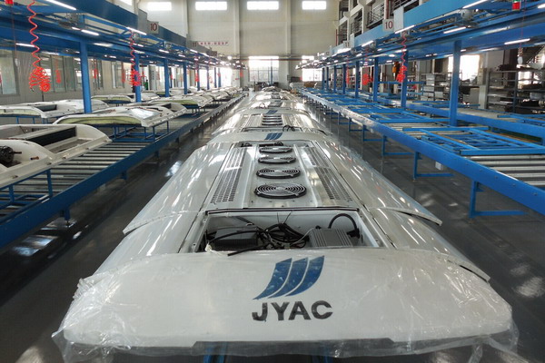 3、变频热泵空调系统智能控制技术:智能控制,风机压缩机全变频,自动调整送风量的大小,和压缩机频率的大小,使其空调在运行之中的节能,达到最小功耗来满足车能负荷的需要。电器空制采用数显面板,微电脑控制。整车通信,及带CAN总线控制,所有信息故障都可在面板上显示。